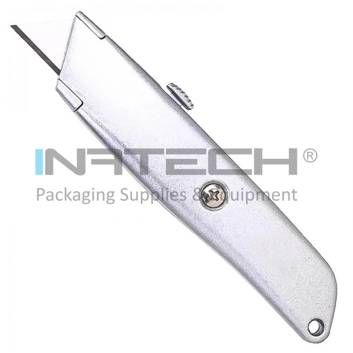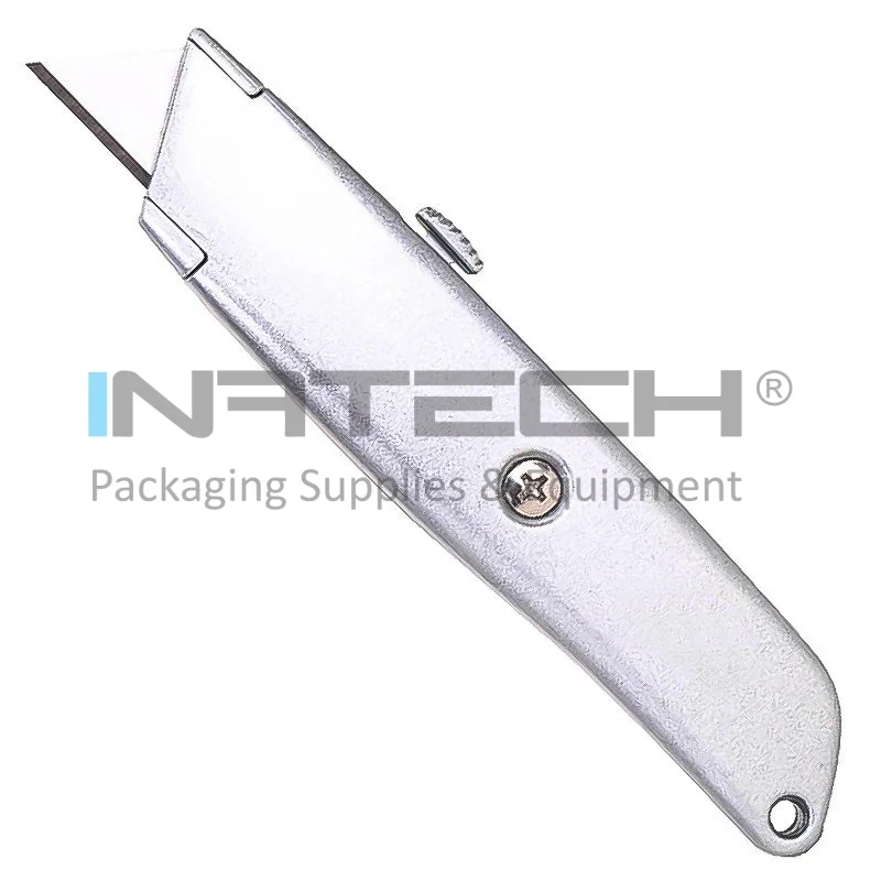 Cutter Retractabil Pentru Hartie Utilizare Intensa, Lama Metal, Culoare Argintiu, Siguranta NU, Suport Metal