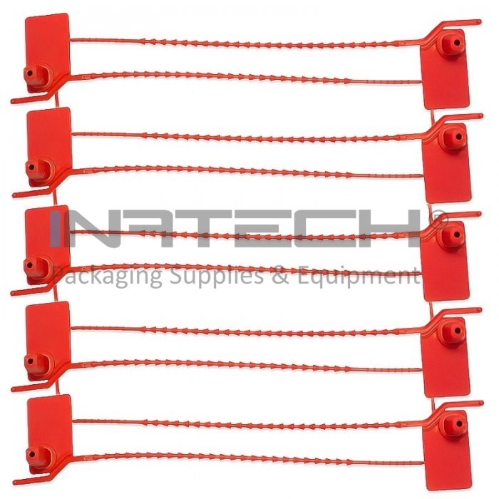 Sigilii De Securitate Lungime 155 mm, Dimensiuni 35x20 mm, Forta de Rupere 15 Kg, Culoare Rosu, Buc / Pachet 5