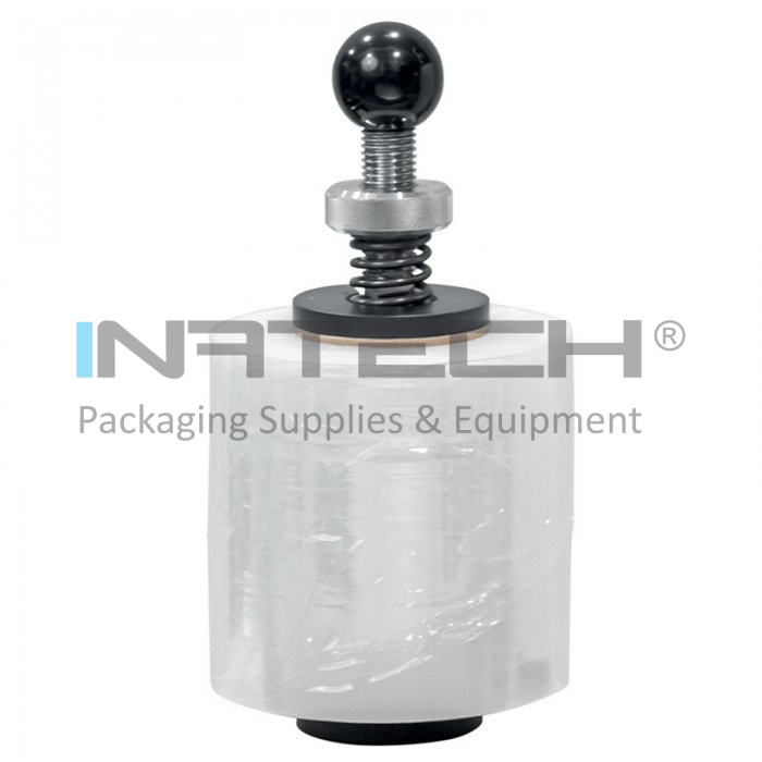 Dispenser Pentru Folie compatibil cu Masinile De Ambalat Colete, utilizat pentru infolierea cutiilor din carton. Dispenserul este fabricat din metal si ofera o rezistenta ridicata. Acest dispenser din metal pentru folia stretch ajuta la pozitionarea, aplicarea rapida si intinderea uniforma a foliei stretch pe palet.