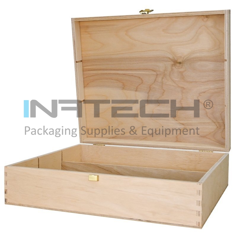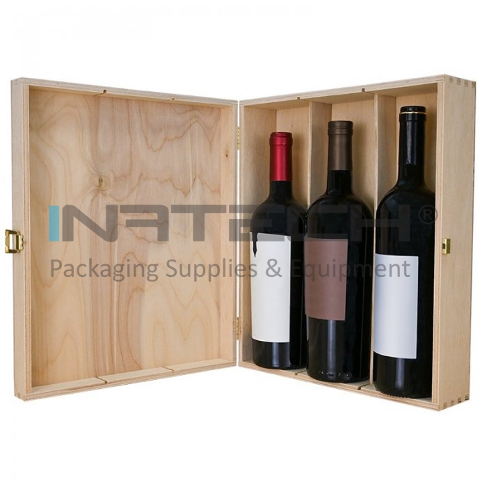 Cutie Din Lemn Pentru 3 Sticle De Vin Lungime 335 mm, Latime 270 mm, Inaltime 95 mm, Capac Cu balamale, Material Lemn, Culoare Natur