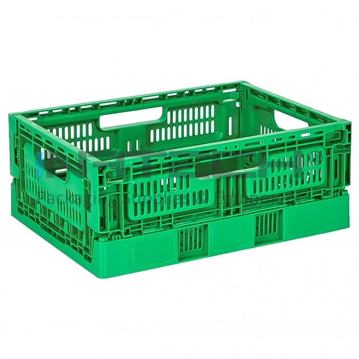 Lada Pliabila Cu Pereti Ventilati Dimensiune Interioara 575 x 370 x 150 mm, Dimensiune Exterioara 600 x 400 x 155 mm, Material PP Virgin, Volum Litri 31, Culoare Verde