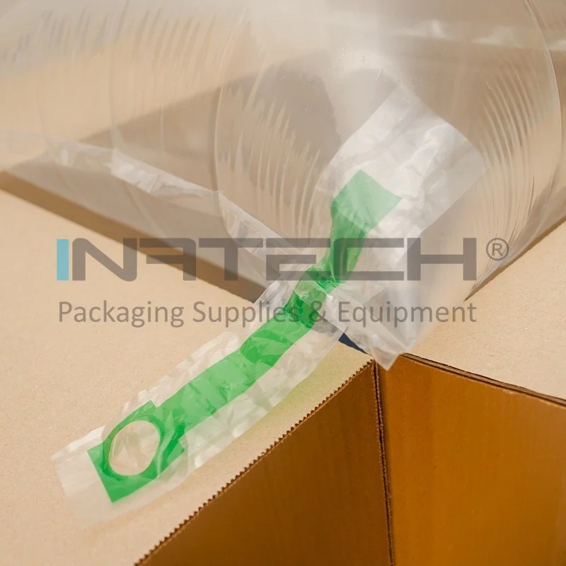 Utilizarea sacilor gonflabili implica reducerea costurilor de stocare si manevrare, deoarece sunt livrati in cutii si sunt umflati doar atunci cand sunt utilizati. Ambalajul de fixare si umplere este usor de instalat si necesita compresor electric, cu priza obisnuita 220 - 240 V.