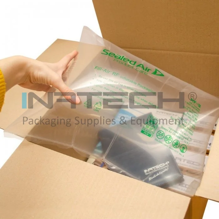 Sacii gonflabili Fill-Air RF sunt disponibili in 7 modele diferite, in diverse dimensiuni pentru aplicatii de umplere, fixare a produselor in interiorul cutiilor de transport. Sacii sunt prietenosi cu mediul si pot fi reutilizati. Comparativ cu materialele de umplere conventionale, volumul sacilor poate fi redus cu pana la 90%.