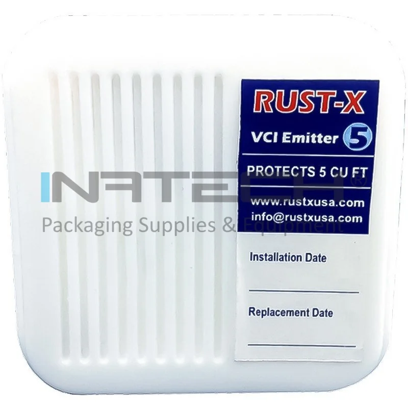Emitator VCI Anticoroziune sau de inhibitori corozivi usor de aplicat. Intr-un spatiu inchis, cum ar fi dulapurile metalice sau carcasele produselor electronice (calculatoare, panouri electrice), acesta protejeaza impotriva coroziunii contactele de cupru si aliajele sale, argintul, etc. Datorita benzii dublu adezive aplicate pe spatele fiecarei capsule emitatoare VCI, pot fi plasate in orice spatiu liber din carcasa produsului electronic.