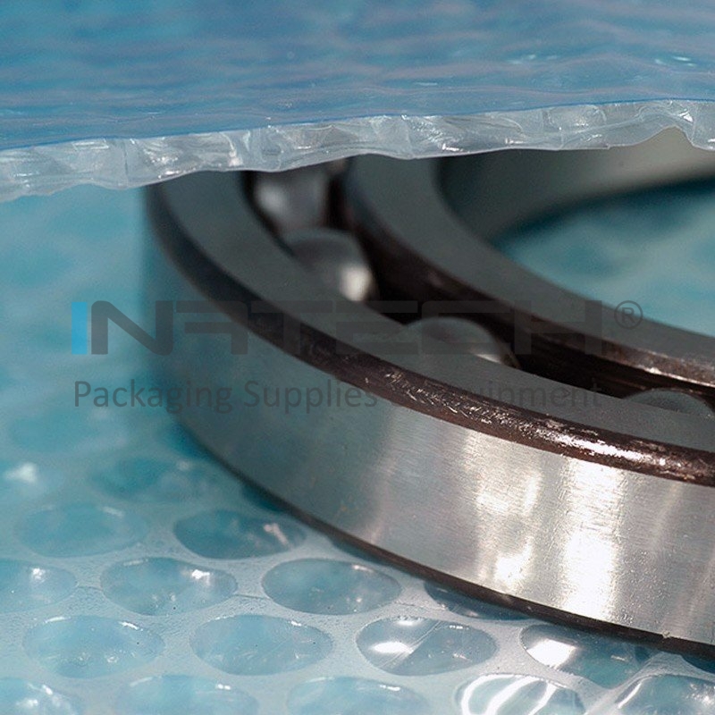 Folia Cu Bule VCI imbina principiul anti-coroziv VCI (coroziune volatila) cu proprietatile anti-soc ale unui film cu bule de aer. Datorita calitatilor sale, folia VCI cu bule de aer ofera in acelasi timp o protectie excelenta impotriva coroziunii, a impactului si a frecarii.
