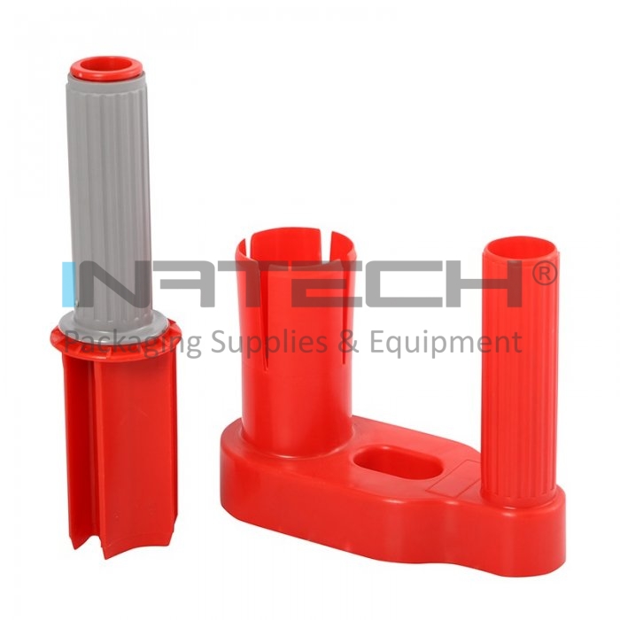Dispenserul din plastic este format din doua parti, o parte in care se fixeaza rola de folie stretch, iar in cealalta parte se monteaza un capac pentru fixarea rolei de folie stretch.