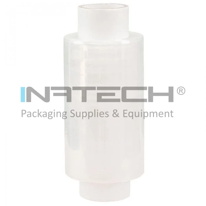 Avand latimea de 100 mm si lungimea de 150 m, aceasta mini folie stretch poate fi folosita si se dovedeste a fi utila pentru mai multe aplicatii, cum ar fi: infasurarea obiectelor mici si greu de infoliat cu ajutorul unei role de folii stretch standard, protejarea partilor produselor, protectia marginilor si impachetarea unor produse cu forme dificil de infoliat. Aceste folii stretch mini role se intind de 3 ori mai mult decat lungimea lor initiala. Filmul de intindere turnat se lipeste numai de sine, astfel incat nu lasa in urma dezlipirii niciun reziduu lipicios.