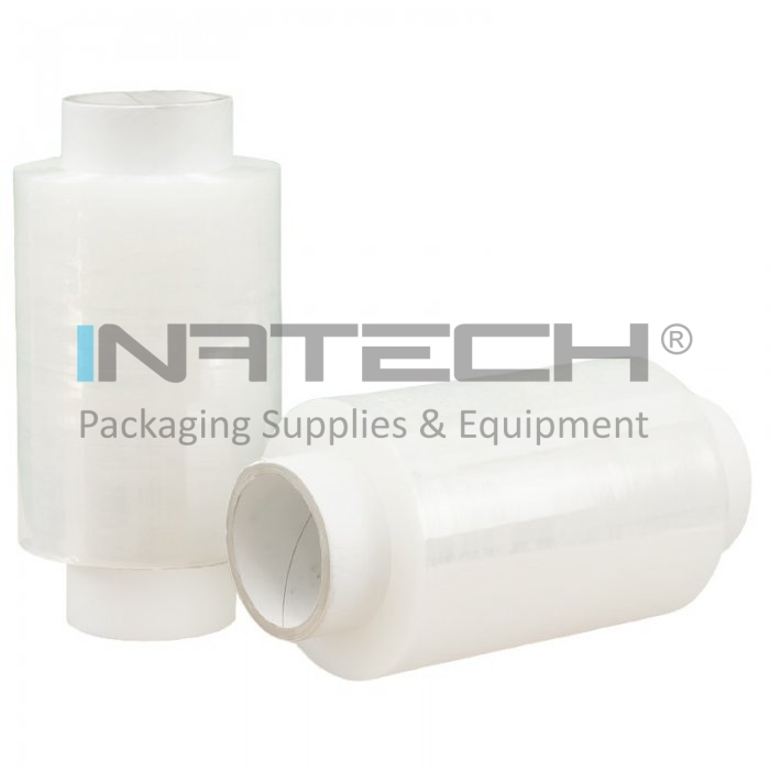 Avand latimea de 100 mm si lungimea de 150 m, aceasta mini folie stretch poate fi folosita si se dovedeste a fi utila pentru mai multe aplicatii, cum ar fi: infasurarea obiectelor mici si greu de infoliat cu ajutorul unei role de folii stretch standard, protejarea partilor produselor, protectia marginilor si impachetarea unor produse cu forme dificil de infoliat. Aceste folii stretch mini role se intind de 3 ori mai mult decat lungimea lor initiala. Filmul de intindere turnat se lipeste numai de sine, astfel incat nu lasa in urma dezlipirii niciun reziduu lipicios.
