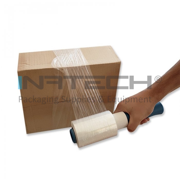 Avand latimea de 100 mm si lungimea de 150 m, mini folia stretch poate fi folosita si se dovedeste a fi utila pentru mai multe aplicatii, cum ar fi: infasurarea obiectelor mici si greu de infoliat cu ajutorul unei role de folii stretch standard, protejarea partilor produselor, protectia marginilor si impachetarea unor produse cu forme dificil de infoliat. Folia stretch mini rola este livrata cu un dispenser din plastic, ergonomic, pentru o aplicare usoara, cu o singura mana.