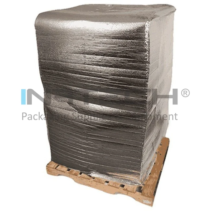Thermo Pallet Cover este o solutie de protectie termoizolanta profesionala, proiectata pentru ambalarea paletilor si a produselor de mari dimensiuni. Fabricata din folie cu bule de aer de 140my grosime, laminata cu strat PET aluminizat de 11my, aceasta husa asigura izolatie termica eficienta, protectie impotriva umiditatii, socurilor si murdariei. Este utilizata in ambalarea produselor din lemn, materiale de constructii, ceramica, sticla, mobila, produse industriale sau chimice.Thermo Pallet Cover se aplica usor si este compatibila cu procese de ambalare manuale, semi-automate sau automate. Flexibilitatea materialului permite o aplicare precisa si sigura, protejand suprafetele sensibile impotriva zgarieturilor, loviturilor si influentei factorilor externi. Husa este disponibila in mai multe dimensiuni standard, cu tolerante precise, adaptabile diverselor tipuri de marfuri si cerinte logistice.