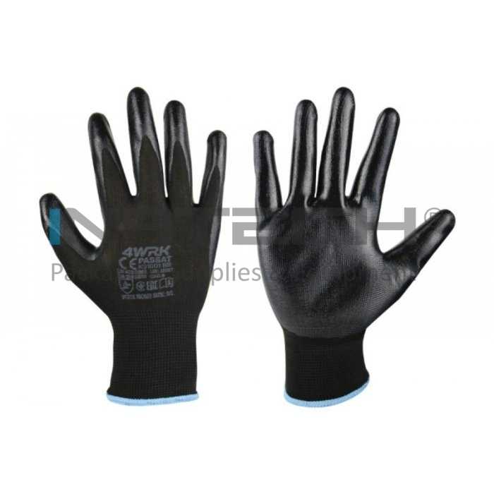 Manusi Lucru PASSAT Marime 10/XL, Material poliester-nitril, Greutate 21GR/Manusa gr, Culoare tesatura tricotata neagra-acoperire neagra