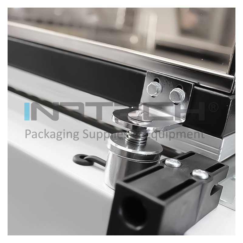Operatorul trebuie sa aseze produsul in interiorul foliei termocontractabile folosind suprafata de lucru si apoi sa-l traga in zona de etansare situata in interiorul hotei. Odata ce aceasta operatiune a fost efectuata, operatorul va trebui sa coboare clopotul pentru a incepe operatiunea de etansare si de termocontractare a filmului. Odata ce operatiunea este finalizata, clopotul se redeschide automat permitand extragerea produsului si continuarea cu urmatorul.