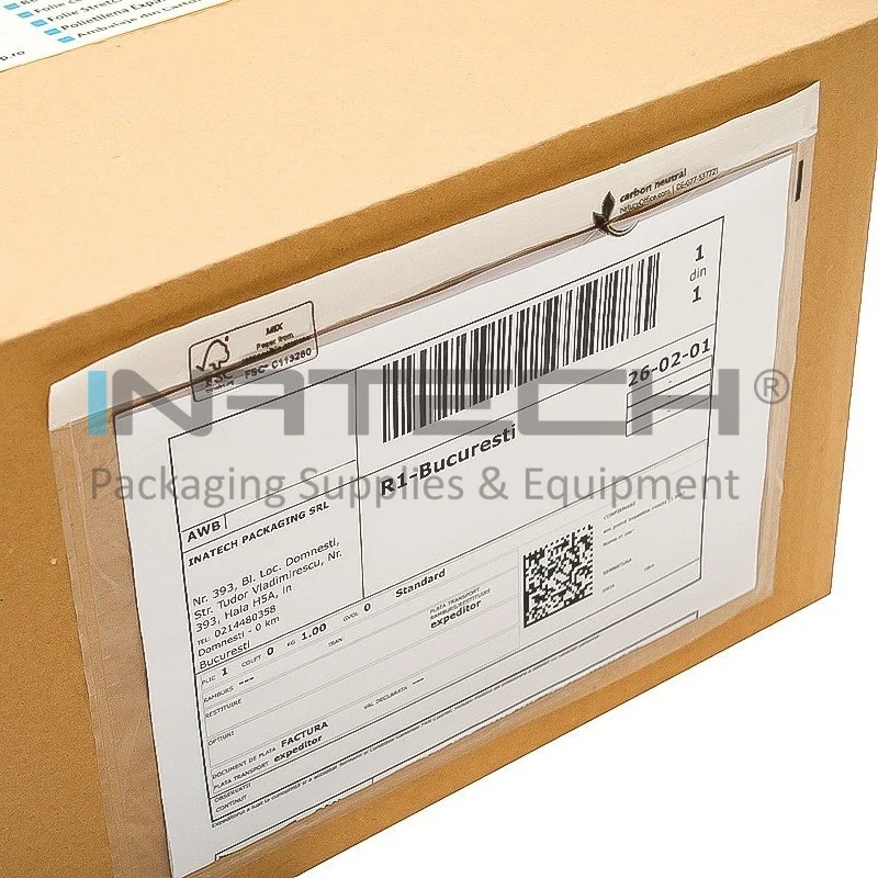 Plicurile adera perfect pe diverse suprafete – carton, folie stretch, plastic sau metal – si raman fixate ferm, fara riscul de desprindere. Transparenta ridicata permite verificarea rapida a documentelor, fara a fi nevoie de deschiderea coletului.