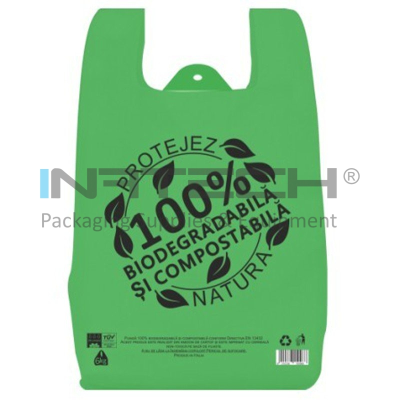 Sacose Biodegradabile compostabile, pungi in conformitate cu Directiva EN 13432. Punga biodegradabila expira doar in momentul cand aceasta intra in contact cu un mediu organic. Pungile biodegradabile compostabile sunt fertilizante pentru sol, deoarece sunt produse din amidon din cartofi si folosesc tehnologia BIOCARTENE si certificate in Bruxelles cu OK COMPOST si VINCOTTE conform Directivei EU 13432.