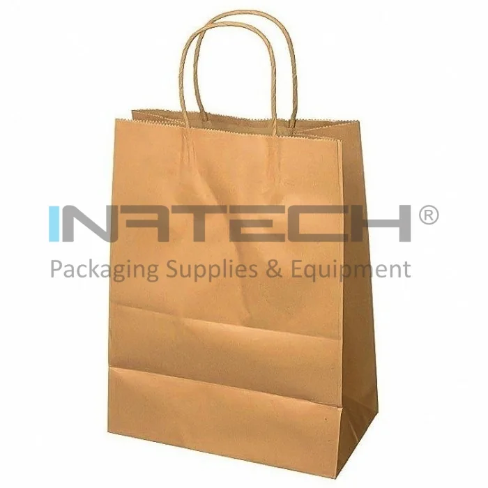 Pungi Hartie Cu Maner Rasucit, Alb/Natur Dimensiuni 180 x 90 x 250 mm, Tip Maner Sfoara, Material Hartie 90 gr/m2, Culoare Alb, Buc / Pachet 100