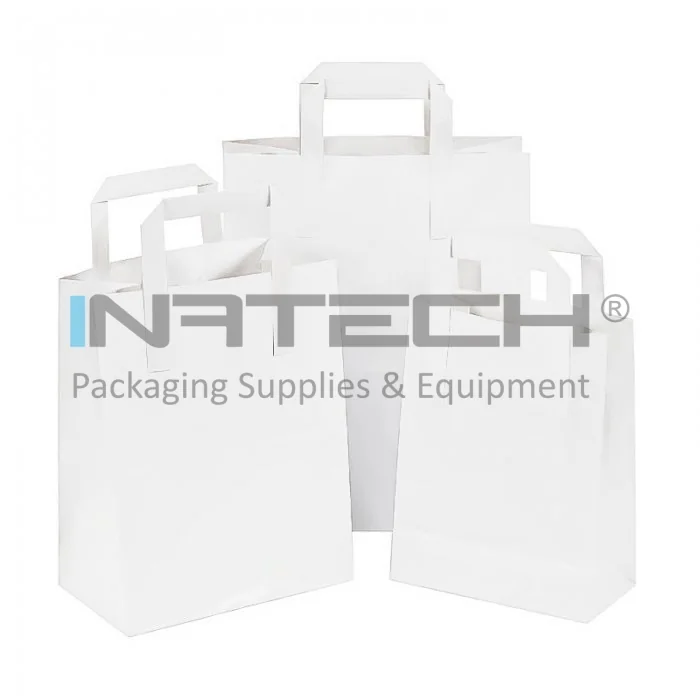 Pungi Hartie Cu Maner Rasucit, Alb/Natur
