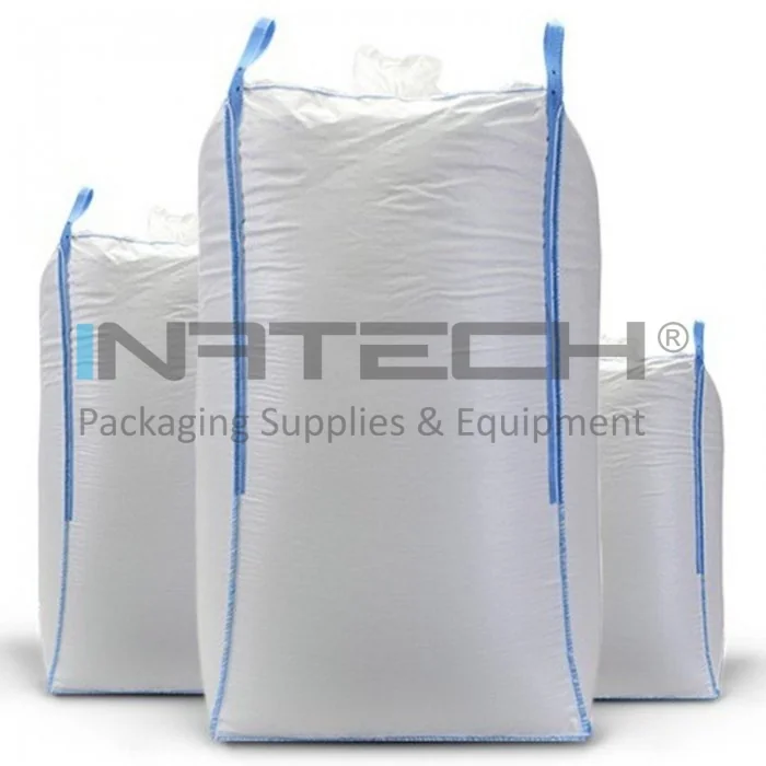 – in functie de natura incarcaturii (pulberi sau produse alimentare), sacii big bags simpli pot fi prevazuti cu folie din polietilena devenind astfel impermeabili (pot fi astfel utilizati pentru protectia marfurilor hidroscopice impotriva umezelii sau la ambalarea pulberilor fine cu scopul de a evita pierderile sau scurgeri de material prin tesatura)